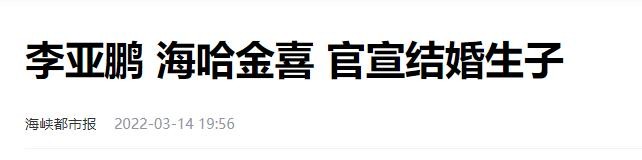 2022年3月14日李亚鹏宣布和海哈金喜走入了婚姻的殿堂,这一消息瞬间炸开了锅。