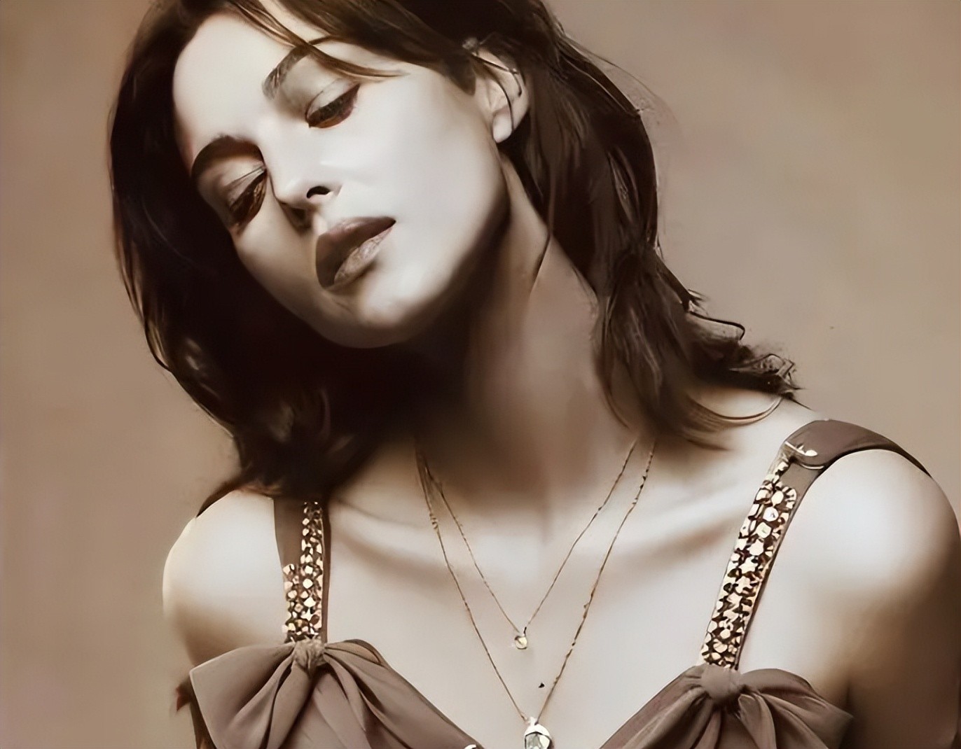 莫妮卡・贝鲁奇 1964 年生于意大利,最初以模特身份入行,18 岁时就登上知名时尚杂志封面,后成为 Dolce & Gabbana 等品牌的缪斯女神,其高挑身材与深邃五官极具魅力