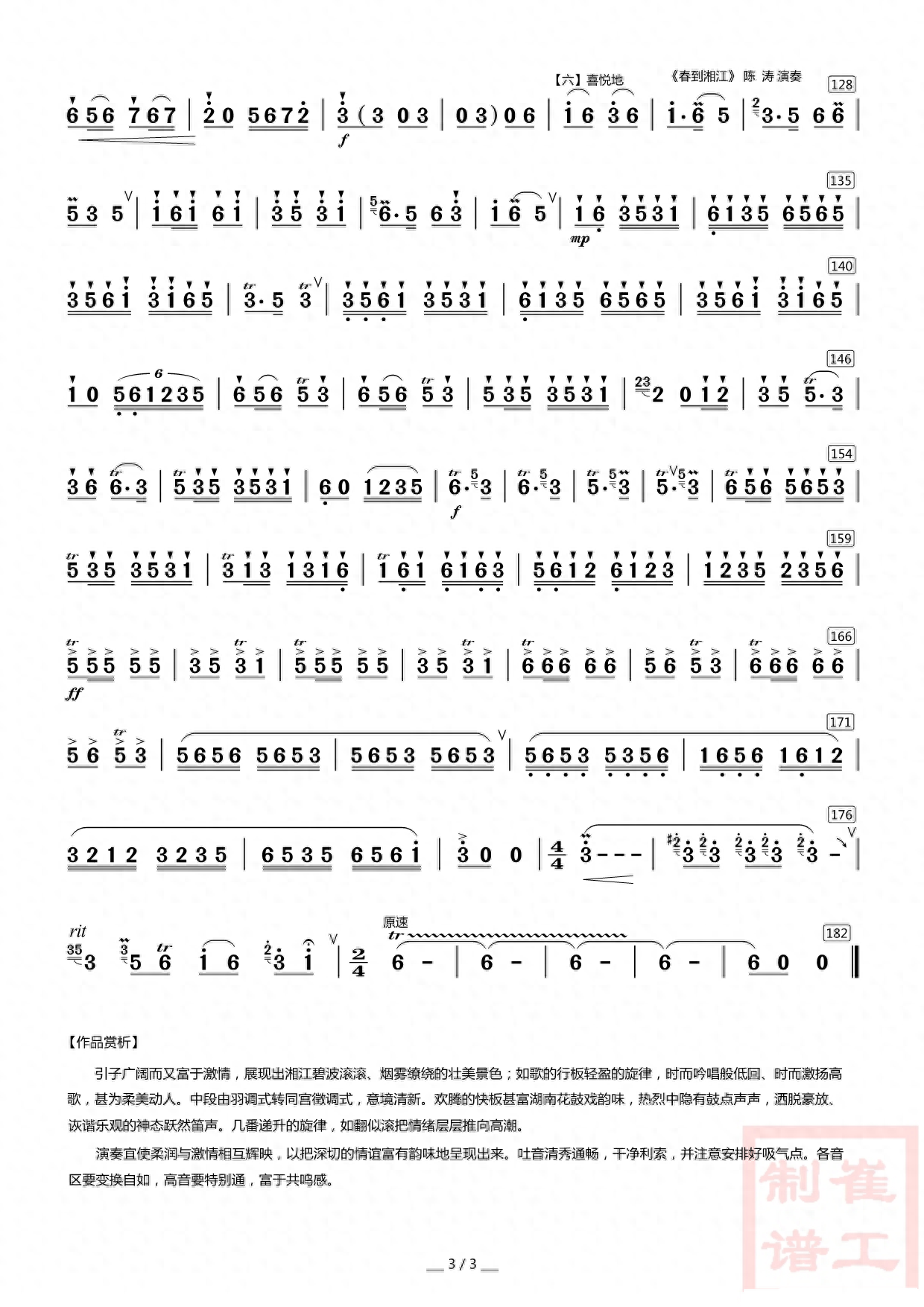 《春到湘江》唐骏乔笛子独奏,艺考十级曲目(附简谱)