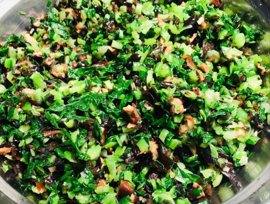 香菇青菜包除了肉馅以外,是最受欢迎的一款,好吃不油腻,清香可口,能引人食欲,而且多吃蔬菜比吃肉强,现在的人不缺油水,反而缺乏富含微量元素的蔬菜,香菇泡发切碎,油菜下热水焯烫30秒钟,切碎后放食盐、芝麻香油、酱油调味,搅拌均匀。