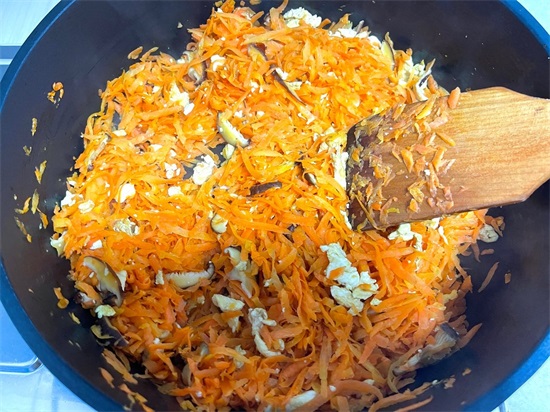 多吃胡萝卜,对视力疲劳有一定的缓解,准备三个胡萝卜,不用去皮,清洗干净,擦成长长的细丝,香菇三五朵均可,泡发后切条,起锅烧油,先煎鸡蛋,再放入胡萝卜丝,炒出水汽,再放入香菇炒一炒,即可关火,调味就放食盐、芝麻香油和五香粉。
