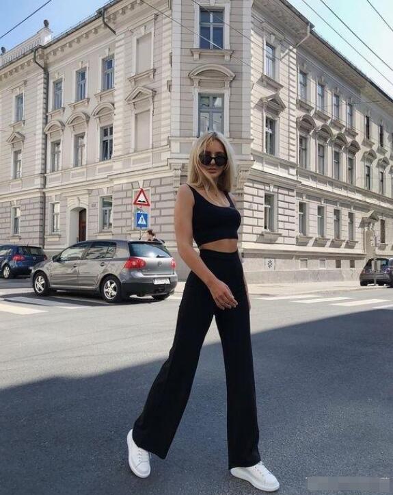 2.黑色阔腿裤+小白鞋