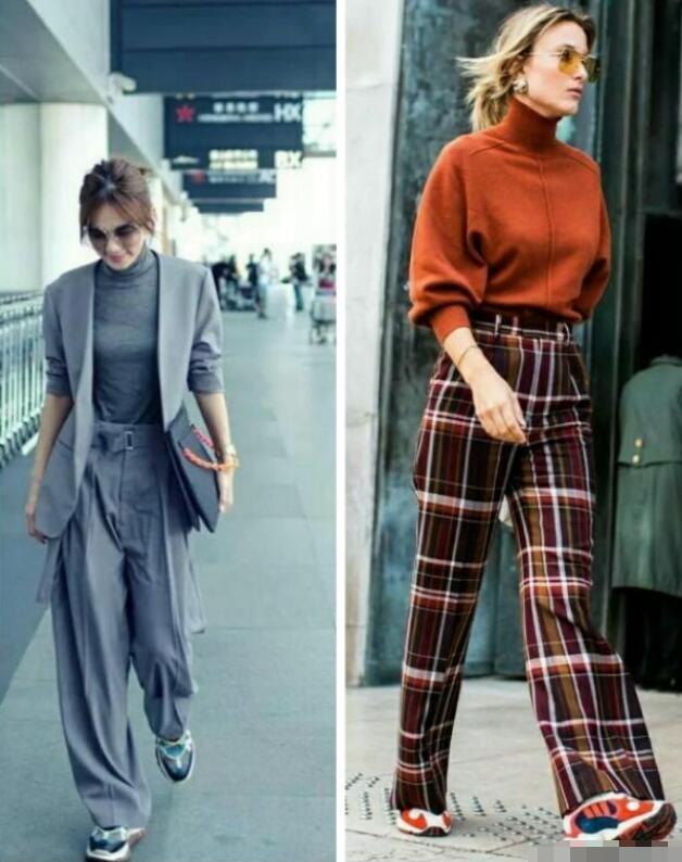 阔腿裤加小白鞋也是一对经典不过时的CP,无论什么时候穿都很时髦。而且小白鞋是任何年龄段的人都可以驾驭的鞋子,在你不知道该穿什么鞋子的时候,小白鞋是永远不会出错的搭配。