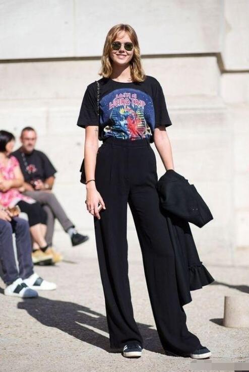 帆布鞋我们应该80%的人都有不止一双吧,穿着轻便又舒服百搭。帆布鞋搭配阔腿裤给人一种慵懒高级的时髦感,用我们衣柜现成的单品,搭配出休闲时尚的穿搭。