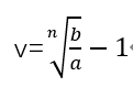 不同的投资本金的投入方式不同,时间长度不同,最后的收益领取方式也不同,为了便于对比,我们现在统一简化成本金(a)一次性投入,存放的时间(n),到时间了一次性把本息和(b)全部取出来,那本金,时间,本息与每年利率(v)我们就可以用如下公式体现内部收益率: