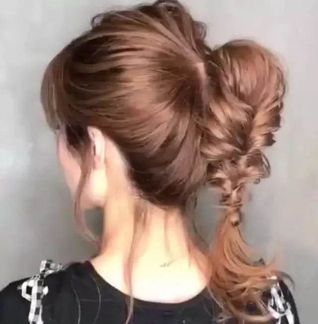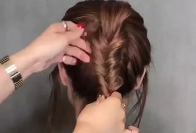 4.再回到整个发尾,从中间分开,把后面编好的部分翻进去,调整一下。