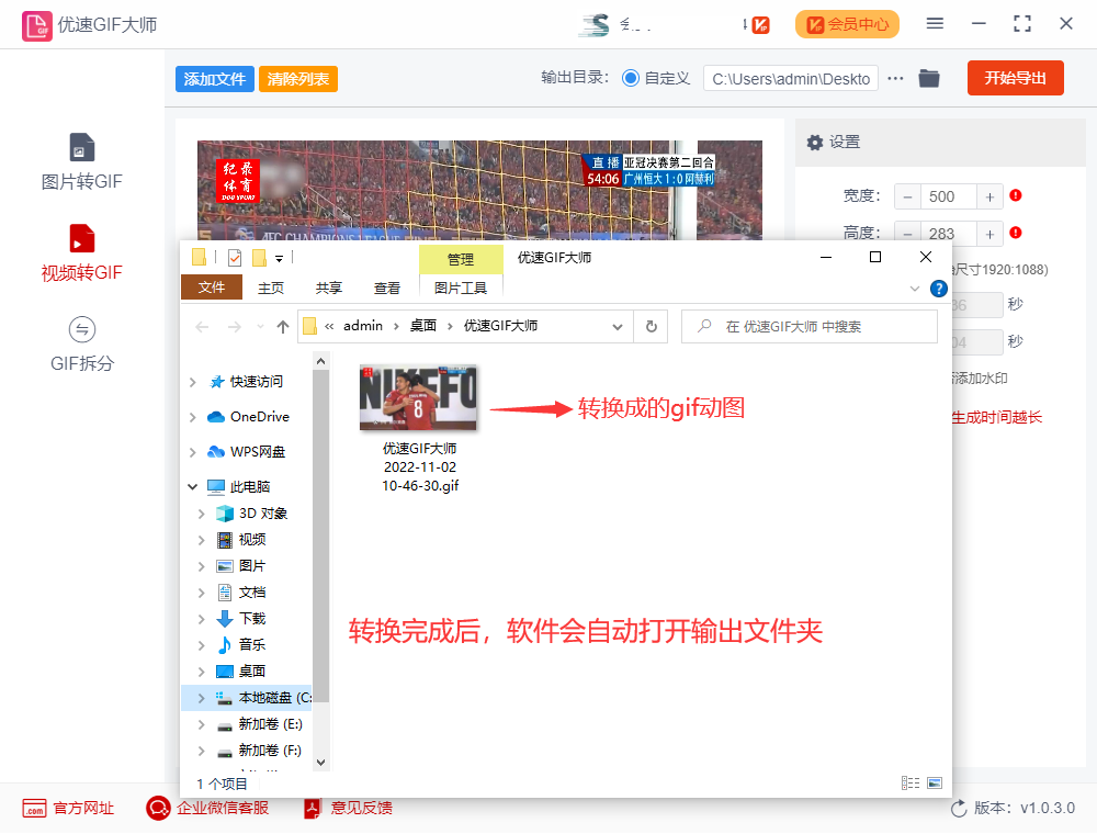 当转换完成后,软件会自动打开输出文件夹,我们可以看到视频转换成的gif动图就保存在这里,我们可以直接打开动图进行查看了。