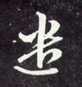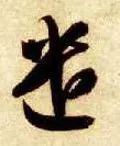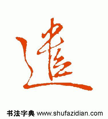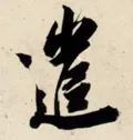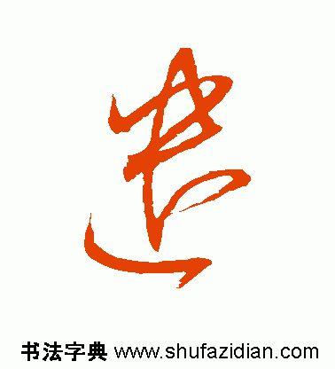 左下部“辶” 旁要注意把握与右上部的距离。点笔居高,收笔向左下稍回锋,以引出下一笔;横折弯钩起笔稍靠左、靠下,横画大抗肩,稍重,到位后往上抬笔锋,然后顿笔回锋走个小“S”弯,注意轻重变化和收笔的位置;平捺藏锋起笔,一波三折,舒展洒脱,注意捺脚与上面笔画的对应位置,最后捺尖要稍平压。