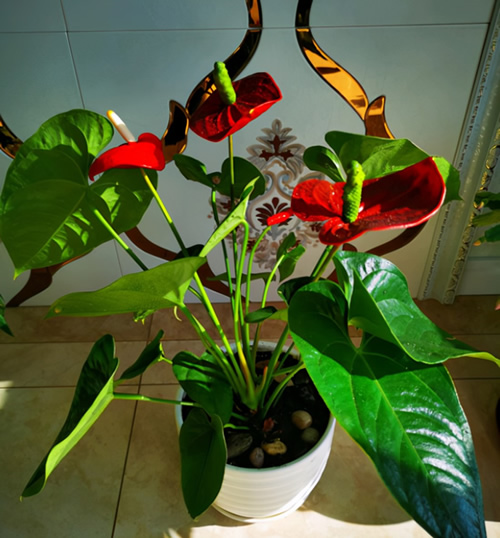 红掌它是属于开花植物,开出来的花像一个假花一样,红红的挂在上面非常的漂亮,所以好多人都把它当作年宵花去养,摆在室内过年的时候非常的喜庆。但是好多人买到红掌在家中养不好红掌,其实红掌养护要有技巧,教你三招,到时候叶子又大又亮,长出一片叶子来就能够开出一朵花来,满盆全是花才是最漂亮的。