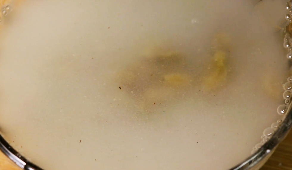 3.因为精盐具有杀菌消毒的作用,同时加入的淀粉,可以吸附葡萄干表面的灰尘,以及杂质。浸泡过后,我们可以看到水面上漂浮着一层脏东西。我们用手轻轻地揉搓几下。