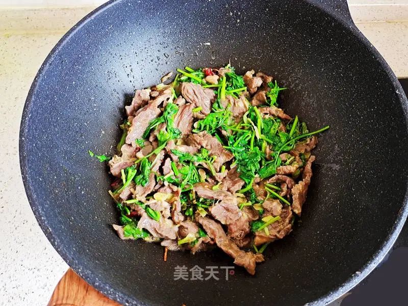 10. 最后放入盐,香菜,翻炒几下即可出锅。