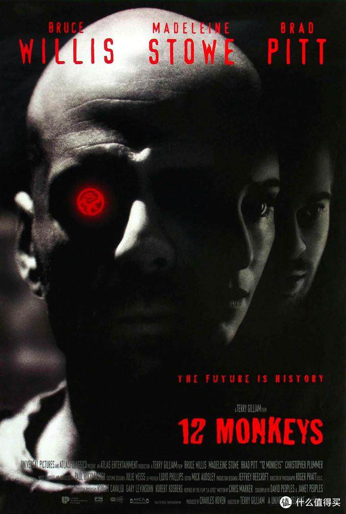 公元2035年,人类被12只猴子军研制的一种病毒侵袭,大部分人类都在这场病毒灾难中死亡,只有少数人侥幸逃生,但也只能在阴暗的地下,苟且偷生。 科学家们决定派人穿越时光回到1996年追查12只猴子军的来历。本片是一部科幻灾难电影,布拉德皮特在本片的表演让人惊艳。这一次,他仍然不是主角,确是电影中最引人注目的。将一个疯疯癫癫的精神病演绎的活灵活现,不仅颠覆了他的帅哥形象,也打动了一向对他持有偏见的奥斯卡评委,获得最佳 男配角提名。