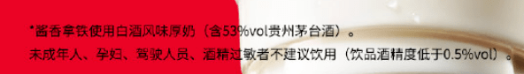 而据瑞幸官方资料介绍,这款酱香拿铁使用的白酒风味厚奶原料,内含53%度贵州茅台酒。