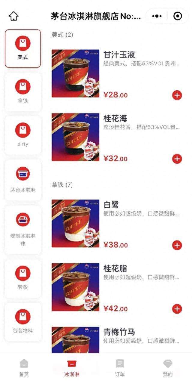 实际上,茅台酒与咖啡的结合不是第一次。早在今年6月份时,广州、郑州、重庆等多家茅台冰淇淋店就推出过含茅台酒的美式、拿铁和dirty等多种咖啡,最便宜的是美式28元/杯左右,最贵的是拿铁,售价42元/杯左右。