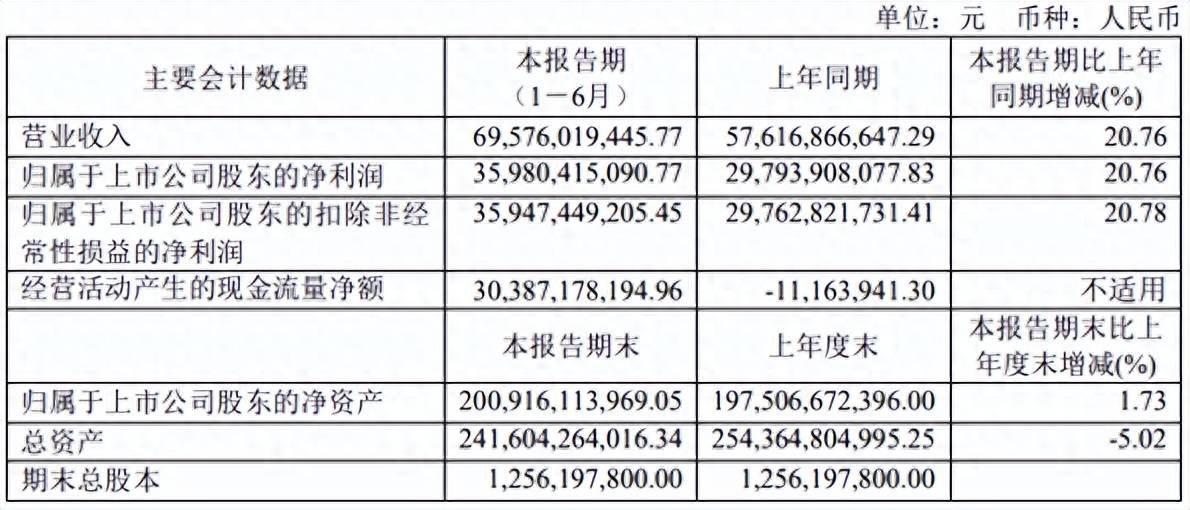 而落到茅台这家具体企业看,虽然其短期业绩并未受影响,还在保持增长态势。财报显示,今年上半年,其营业收入和净利润均同比增长20.76%,分别为695.76亿、359.80亿。