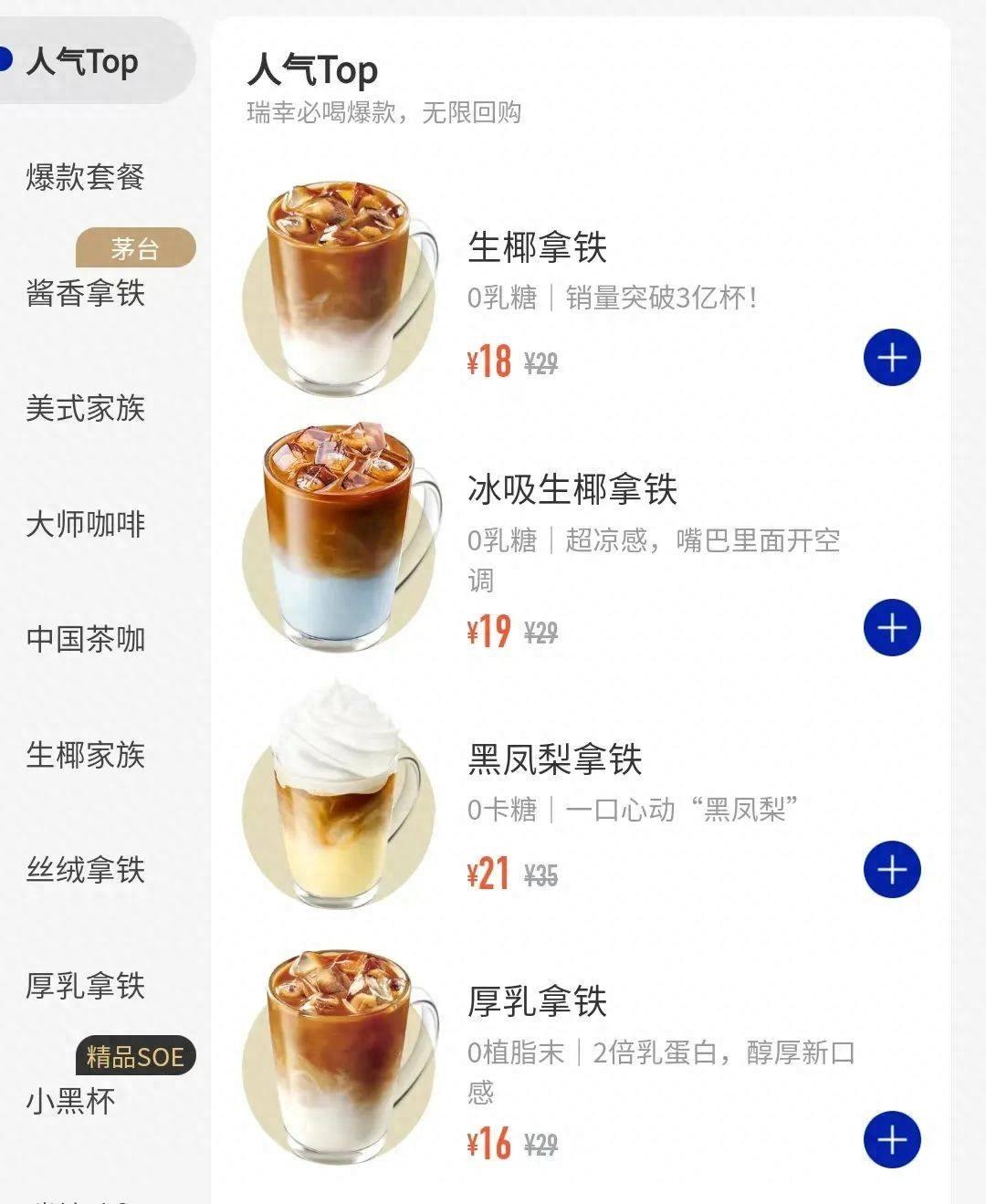 与此同时,喝惯了9.9元低价瑞幸咖啡的用户,会为几乎是瑞幸最高客单价的酱香拿铁买单吗?