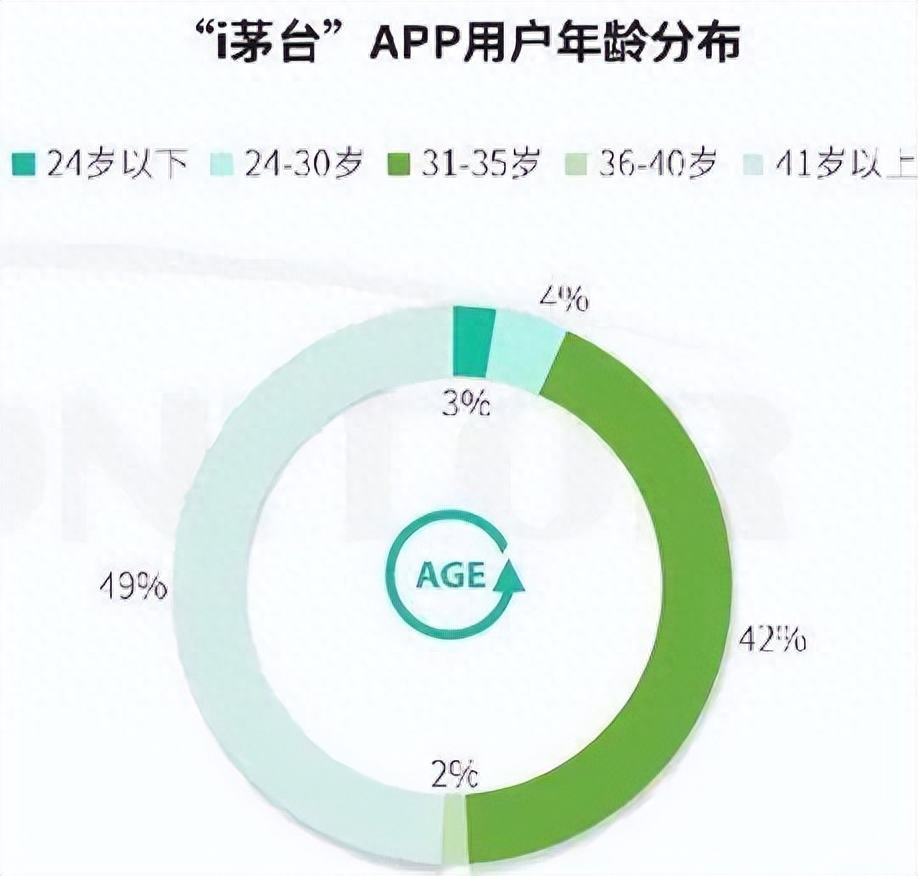 在茅台的消费群体中,年轻人占比不高,以“i茅台”APP为例,新生代增长策略研究院今年3月底发布的数据显示,从“i茅台”APP的用户属性看,41岁以上用户占比49%,31-35岁用户占比42%,30岁以下年轻人仅占7%。