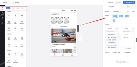 除此之外,还可以在左侧的【模块】、【页面】、【控件】以及【风格】选项中对小程序店铺模板进行更详细的完善与设置,比如在【模块】选项中,便可选择添加店铺信息、公告、员工、卡项、产品、搜索、优惠劵、拼团、推广有礼、短视频营销、自助买单等功能至小程序店铺中,丰富实体门店小程序店铺。