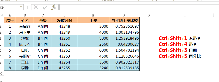 Ctrl+Shift+1(字母键上方的1)快速使单元格显示为不带¥的会计格式
