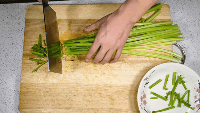 2、在煮米粉的时间,我们来准备自己喜欢的配菜,芹菜洗干净,切成2里面的一段儿。