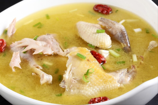 第五步,有时间的话,至少要炖一个半小时,鸡汤的香味更浓郁,营养也会更丰富。鸡汤炖好之后,最后加上几个枸杞,然后放一勺食盐来调味,搅拌均匀之后,就可以关火了,趁热盛出来喝。
