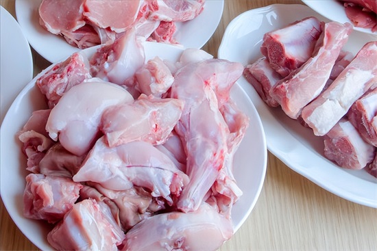 第一步,把鸡肉剁成块之后,需要将其放入水中,浸泡着,泡上1个小时左右,中途记得换一次水。