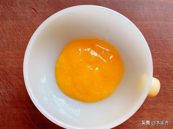 白水煮蛋,蛋白自己吃,蛋黄给孩子吃。蛋黄加入适量的温水,拌匀即可。