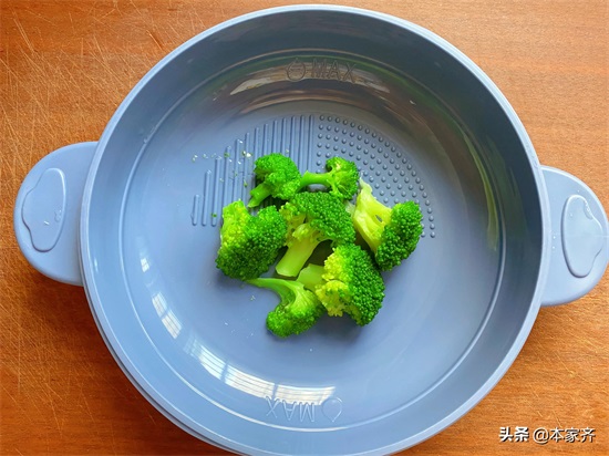 西兰花用盐水浸泡二十分钟,再放入滚水里煮至软烂即可。