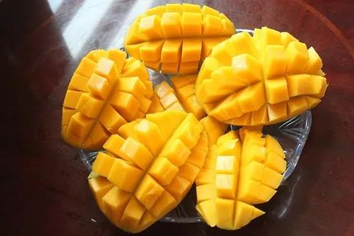 2、观察果皮:芒果的颜色均匀,橙黄色,皮肤光滑,果蒂周围没有黑斑,触摸时感觉结实而多肉。黑点是未成熟的芒果或成熟的芒果。