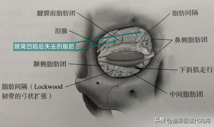 眼窝凹陷是因为眶隔脂肪容量的缺失造成的,通过脂肪、脂肪胶、玻尿酸等人工材料就可以很好地进行填充,但是我更喜欢使用