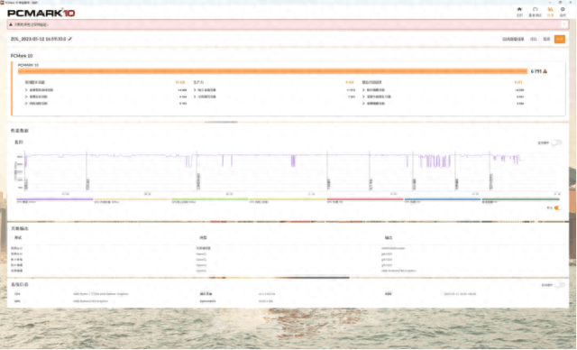 整机性能方面我们参考PCMark 10 Work模式测试,其综合性能评分达到了6791分,其中,常用基本功能单项评分高达10625,生产力单项评分高达9444分,说明在基础的性能和日常办公方面,这款机器都拥有流畅的使用体验。