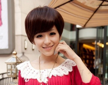 童颜女孩俏丽短发,蓬松时尚,而又有干练小女人气质,栗色的染发暗淡时尚。再搭配斗篷式翻领毛衣更娇俏淑女!