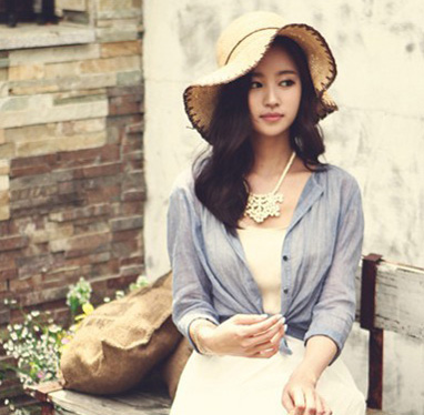 细致蓬松的中分微卷发造型,搭配一顶大檐编织草帽,瞬间拥有巴掌小脸。