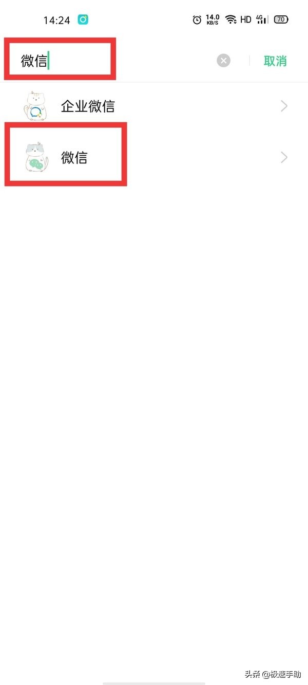 第四步,进入列表后,搜索“微信”,并点击进入。