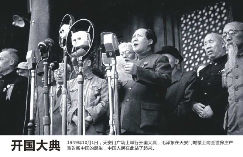 10月1日,开国大典在北京天安门前举行,毛泽东用带着些湖南口音的声音向全世界宣告: