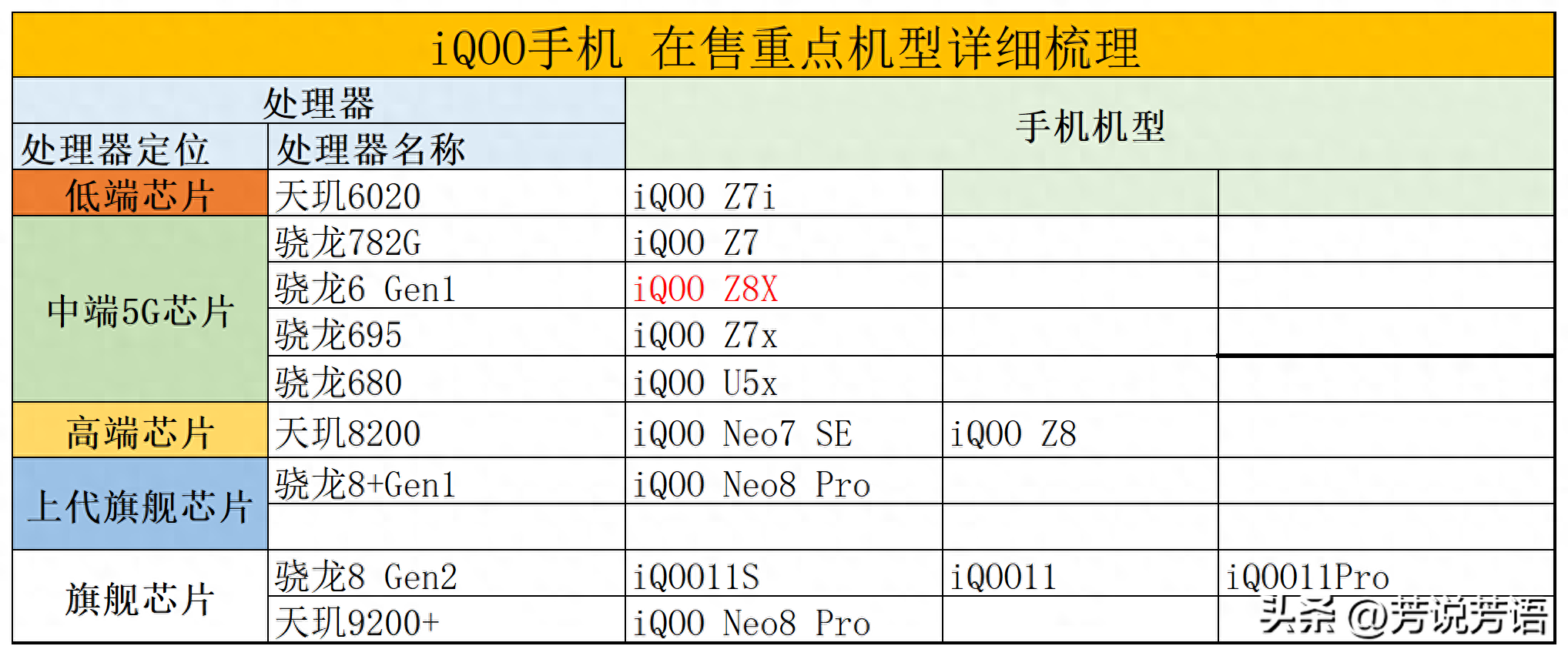 目前iQOO使用的芯片主要有以下9颗,具体大家可以参考下图。