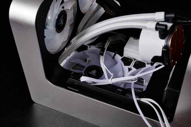 水冷最好是选购鑫谷自家推出的产品,这样兼容性最高,而且白色与银色的搭配整体视觉效果更好。可惜的是笔者手上并没有白色的ITX主板,不然装机效果会更加理想。