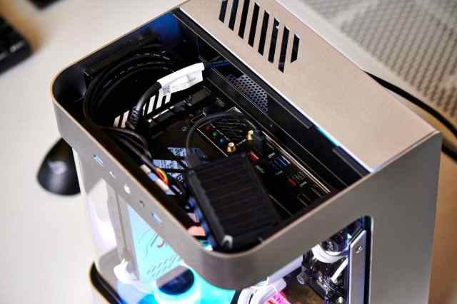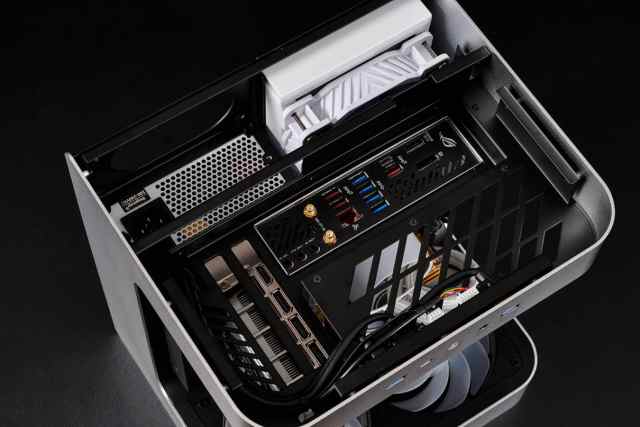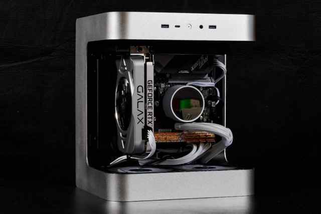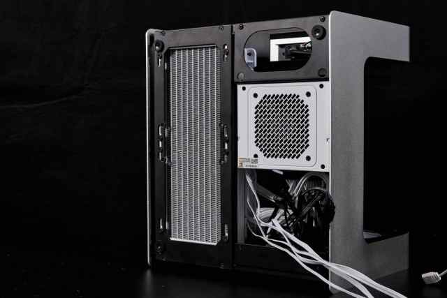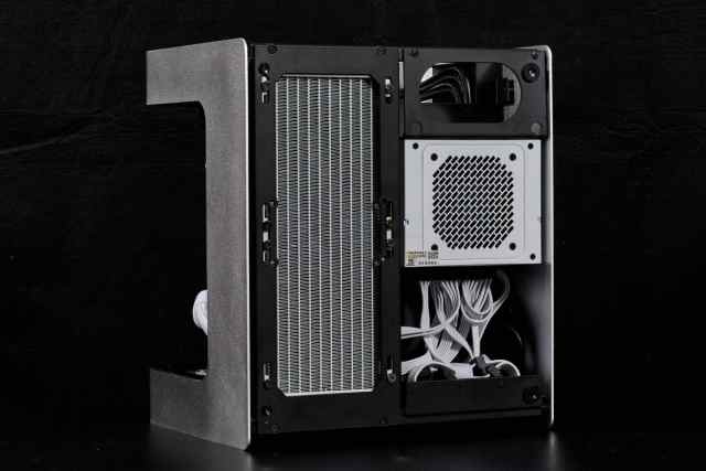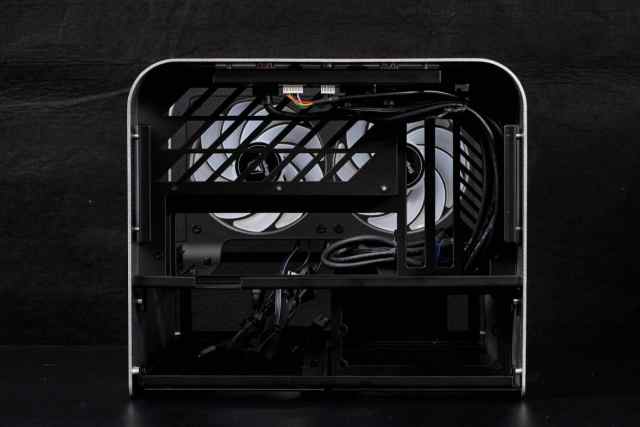 不到20升的ITX小空间内,内部采用前后两层的设计,前面是主板+显卡,而背面是240水冷+电源,独立分层的好处就在在于解决ITX机箱常见的热量堆积问题。