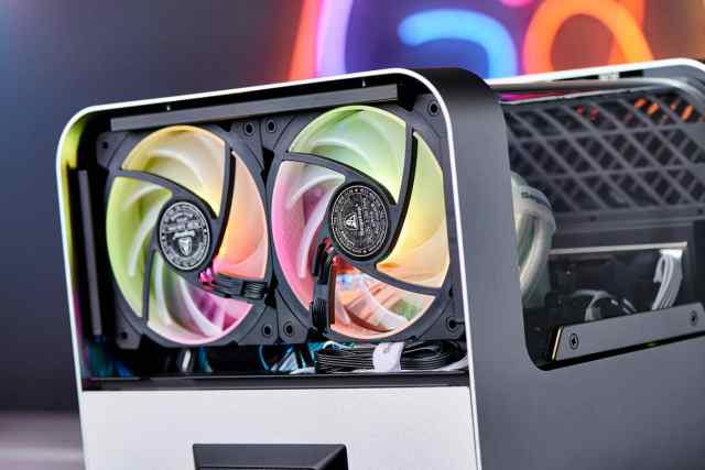 底部是两把反向的12cmRGB风扇,这样可加快内部的热量从顶部排出。