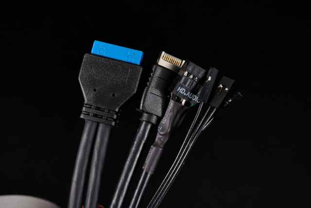 一个前置USB3接口,一个TYPE-C接线,一个开关机,一个音频接口,以及主机状态指示灯。