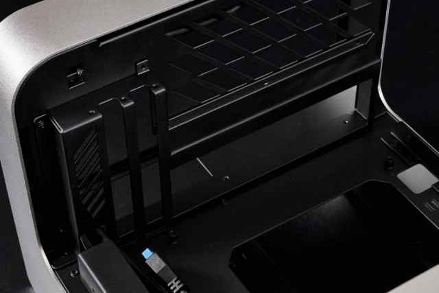 箱长为26.9cm,宽为23cm,高为32.1cm,总体积19.7升,放在桌面上还是比较省地的。而内部是采用了创新的ATX3.1结构:主板横着安装,显卡垂直安装,借着下方面的内置方面把热量从上方排出。