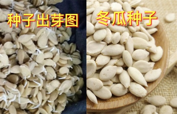 3、种子处理;冬瓜品种很多,选择适合自己的品种,由于冬瓜种子外壳厚壁较厚,妨碍种子吸水能力和发芽率,导致冬瓜种子的发芽比其他种子要困难。所以在播种前先将干种子放入50℃温水中搅拌几次,当水温降到30℃时,再浸泡10小时,取出洗干净后用布包好进行催芽,催芽温暖控制在25℃~30℃下催芽,催芽过程中要每天翻动一次种子使其均匀受温,大约5天左右开始出芽,便可播种。