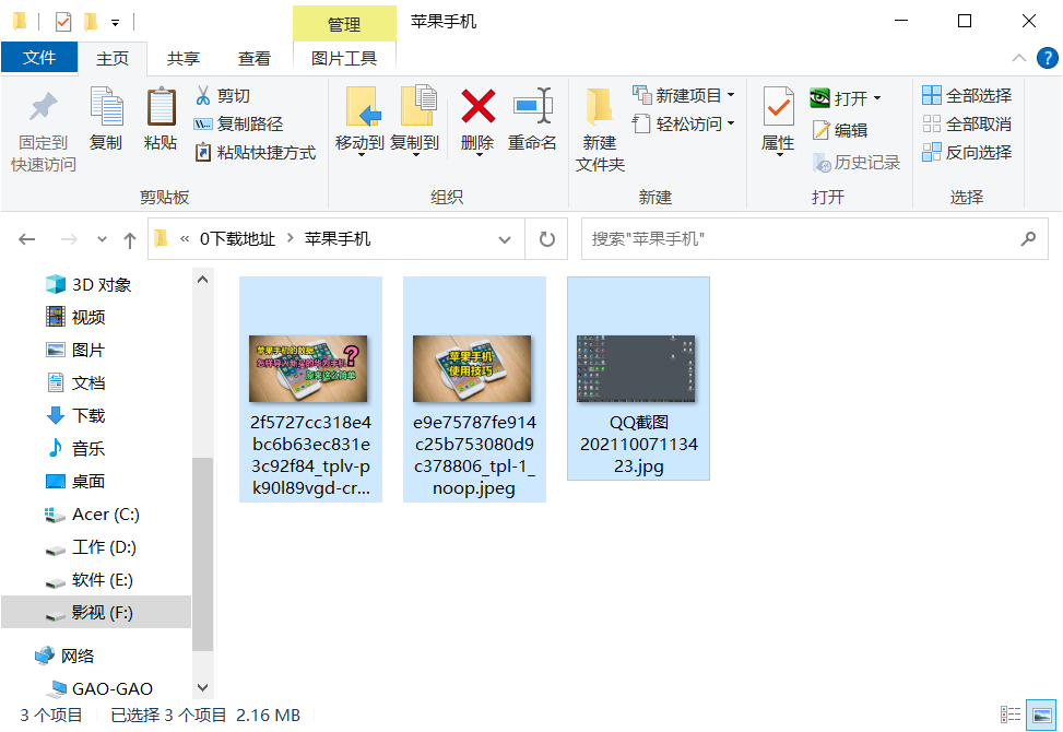 为了演示,我们可以复制几个图片到这个“苹果手机”文件夹里。