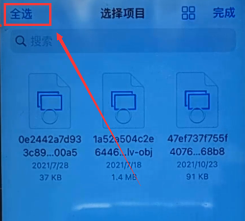 在下拉菜单中,点击“选择”,就会选择“苹果手机”文件夹里的所有图片。