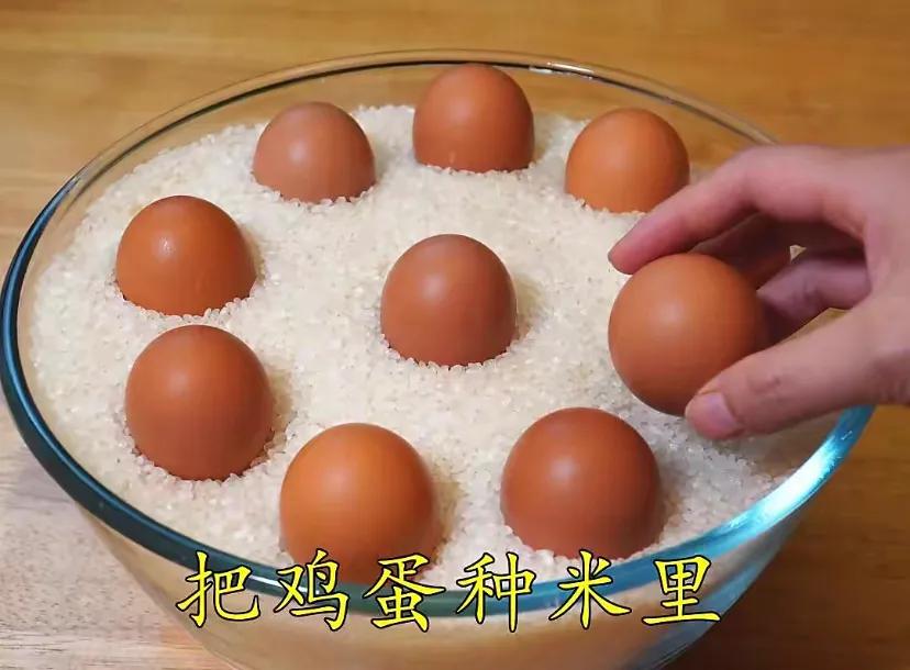 第三:还有一招鸡蛋放几个月都不会坏,就是按照“小头”朝下,“大头”朝上的放置顺序,放到大米里,因为大米干燥,可以使鸡蛋一直保持干燥状态,还有大米里面呢有一些细小的粉末,防止细菌从鸡蛋的气孔里进入!这样鸡蛋就达到保鲜效果了呦,可以尝试一下!