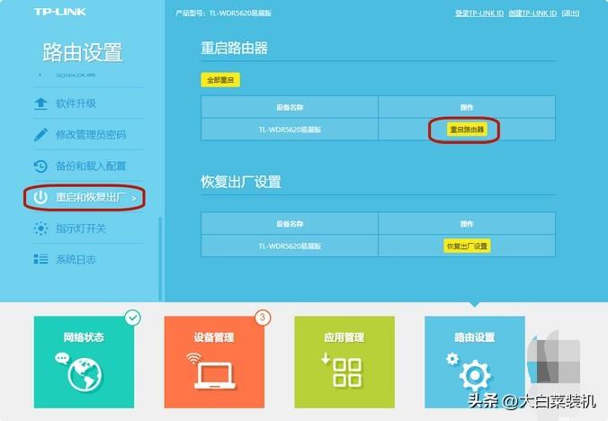 最后,点击左侧“重启和恢复出厂”,点击左侧“重启路由器”,路由器基础设置完毕,你的WiFi也可以用了!