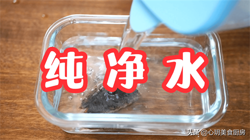海参清洗干净以后,放入一个玻璃容器中泡发海参,选用的水必须是纯净水,所以说是不是很多人第一步就做错了。