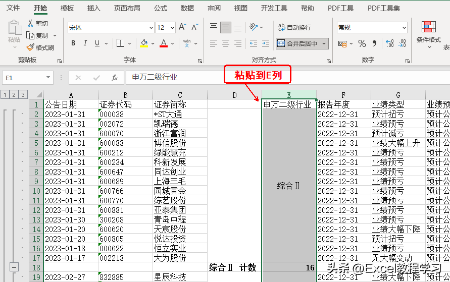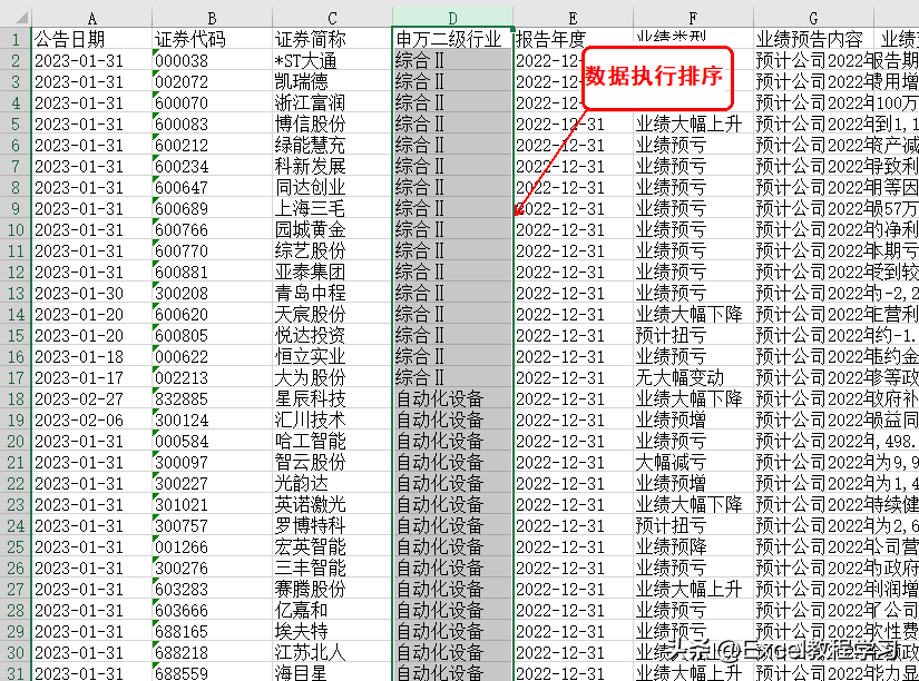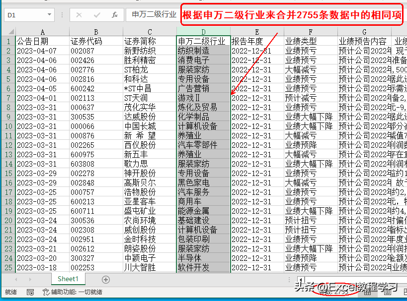上市公司2022年年报业绩预告,现在需要根据“申万二级行业”列,对所有2755条数据进行同类项的合并,简言之就是将相同行业合并到一起。