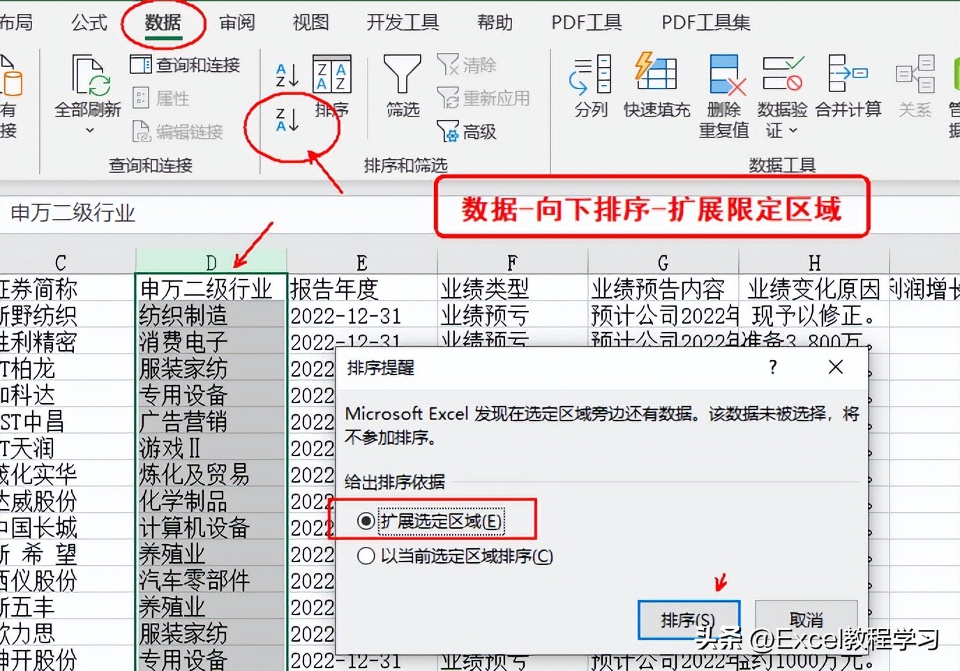 ”的图标,如下图所示,点击该图标,在弹出的排序提醒框中,选择“