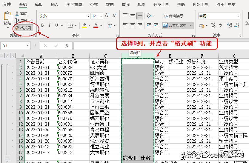 将D列的格式进行复制,我们再粘贴到E列上,E列数据便会调整为D列格式